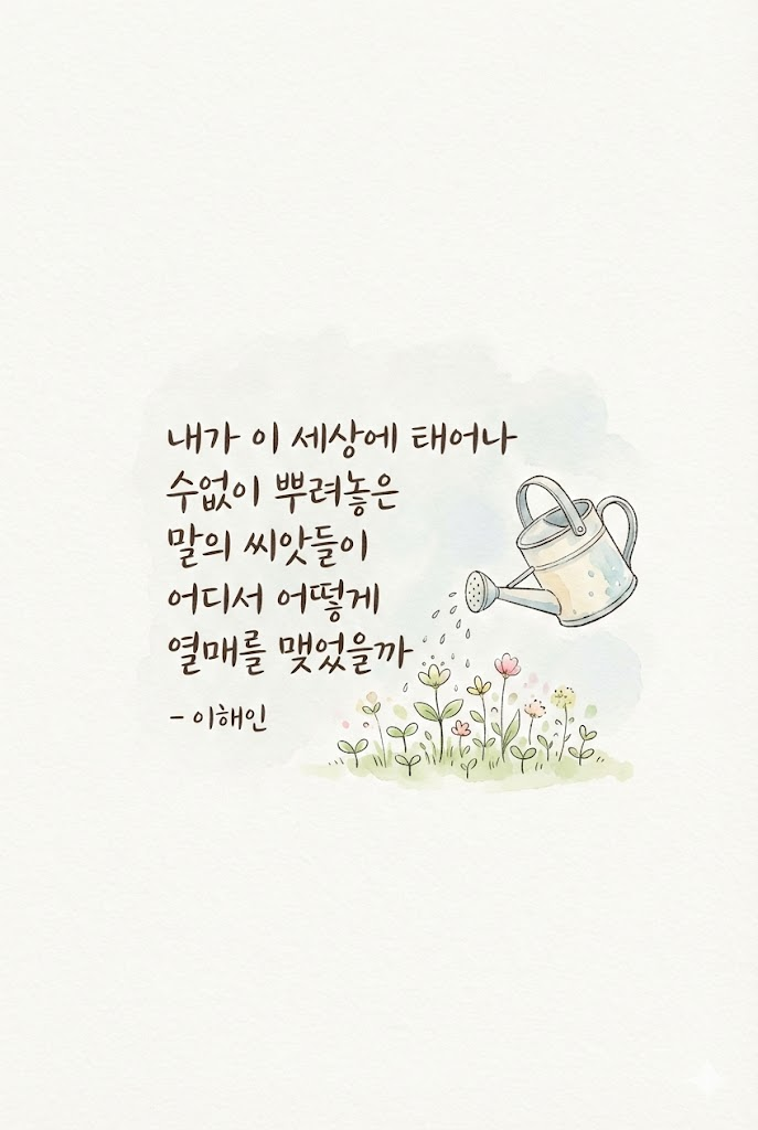 소개해 드릴 프롬프트는 아날로그적이고 따뜻한 감성을 바탕으로, 아름다운 시 구절과 그에 어울리는 수채화 삽화를 결합한 '감성 시화(詩畫) 생성 프롬프트'입니다.