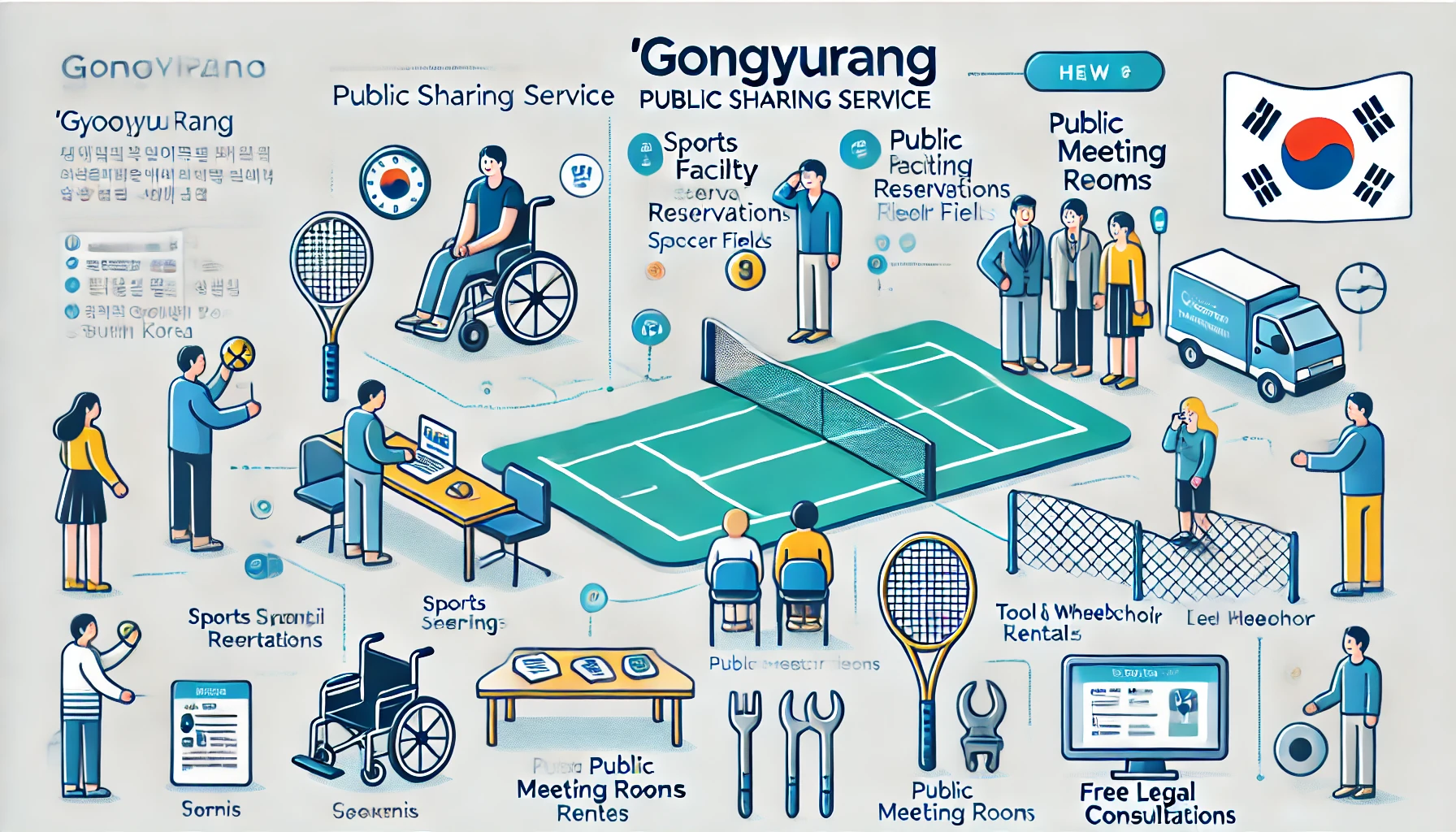 🏀 체육·회의시설 대관부터 🔧 생활 공구 및 휠체어 대여, ⚖️ 무료 법률 상담까지 모두 한 곳에서 예약 가능!