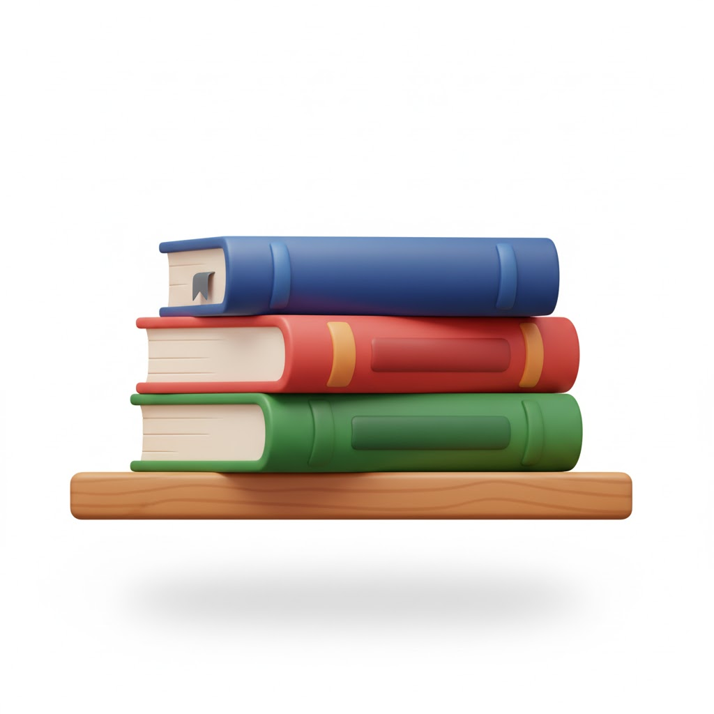 A sleek, 3D icon of a [stacked books on a shelf] with soft shadows and a clean, glossy finish, rendered in a modern, vibrant cartoon style against a white background, suitable for a macOS dock.