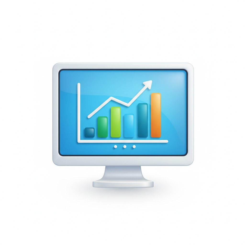 A sleek, 3D icon of a [computer monitor displaying a graph] with soft shadows and a clean, glossy finish, rendered in a modern, vibrant cartoon style against a white background, optimized for Windows UI.