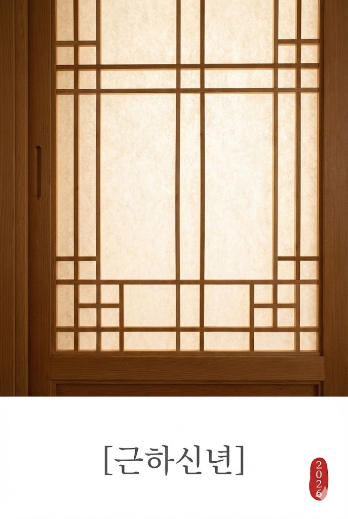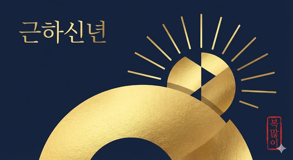 Greeting Text: In a clean, negative space, the greeting text "[근하신년]" is written in an elegant font.