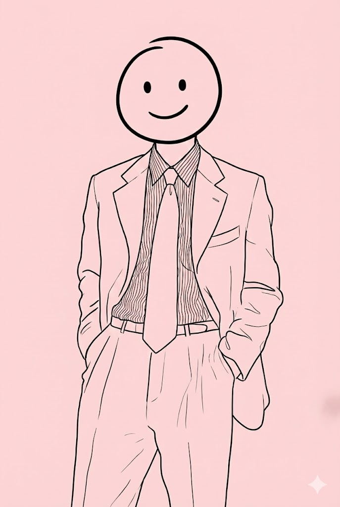 Create a stick-figure drawing from the uploaded photo. Preserve your identity using simple facial structure and proportions. Draw an oversized head in a clean stick style. Show the full body using clean stick lines in a long-shot frame. Keep the pose relaxed and expressive. Place the figure on a soft pastel pink background. Remove all text, logos, and watermarks. Export in high resolution with slight blur on the background.