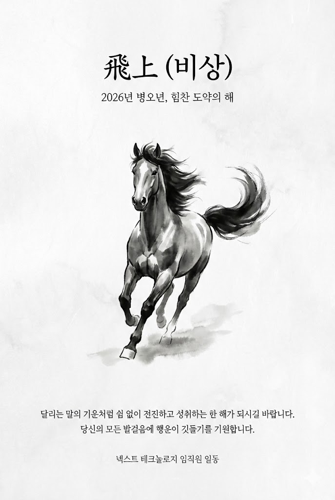 Footer: At the very bottom, add the sender's name or brand name in a subtle signature style: ["넥스트 테크놀로지 임직원 일동"].