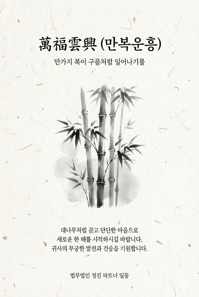 Footer: At the very bottom, add the sender's name or brand name in a subtle signature style: ["법무법인 정진 파트너 일동"]