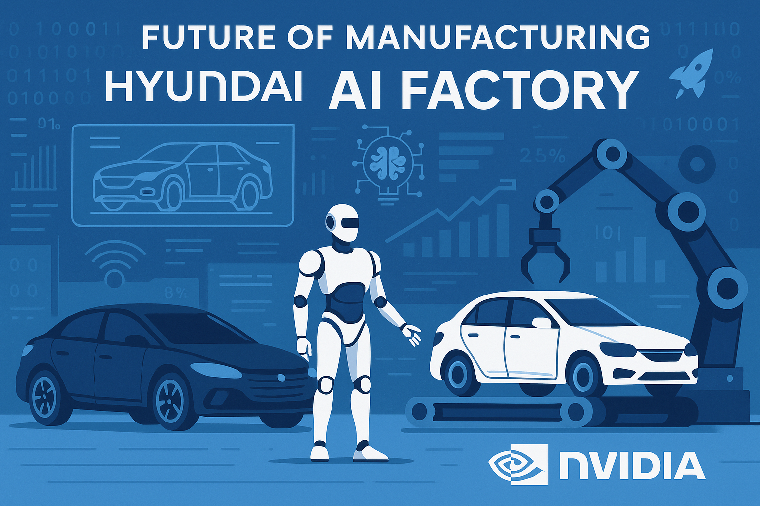 메타설명: 현대차와 엔비디아가 손잡고 스마트 공장·자율주행·로보틱스까지 아우르는 ‘AI 팩토리’ 구축에 나선다. 디지털 트윈부터 생성형 AI까지, 모빌리티 산업 전환의 신호탄을 읽어본다.