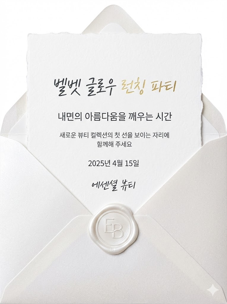 브랜드 행사, 결혼식, VIP 파티 등 격조 높은 초대장이 필요한 순간, 이 프롬프트 하나로 스튜디오에서 촬영한 듯한 고품격 결과물을 얻으실 수 있습니다.