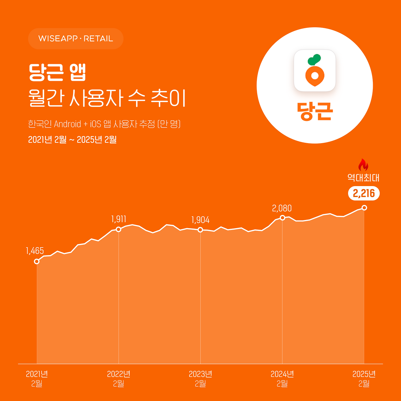 | 당근마켓 | 2,080만 명 | 2,216만 명 | 7% 증가 |