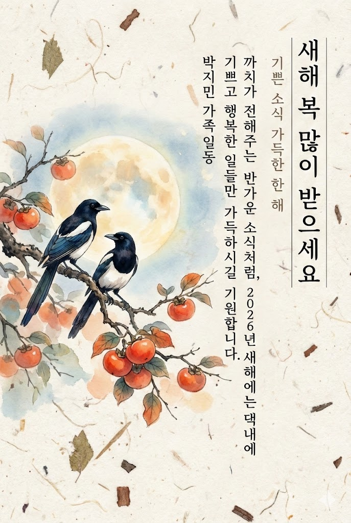 이 프롬프트를 통해 여러분만의 특별한 2026년 연하장을 만들어, 소중한 분들에게 감동을 전해보세요. 한국적인 아름다움이 담긴 이 카드는 받는 분들에게 잊지 못할 새해 선물이 될 것입니다.