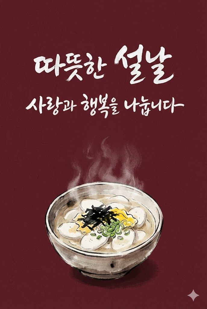예시 7: 따뜻한 정을 나누는 떡국 (Deep Maroon)
