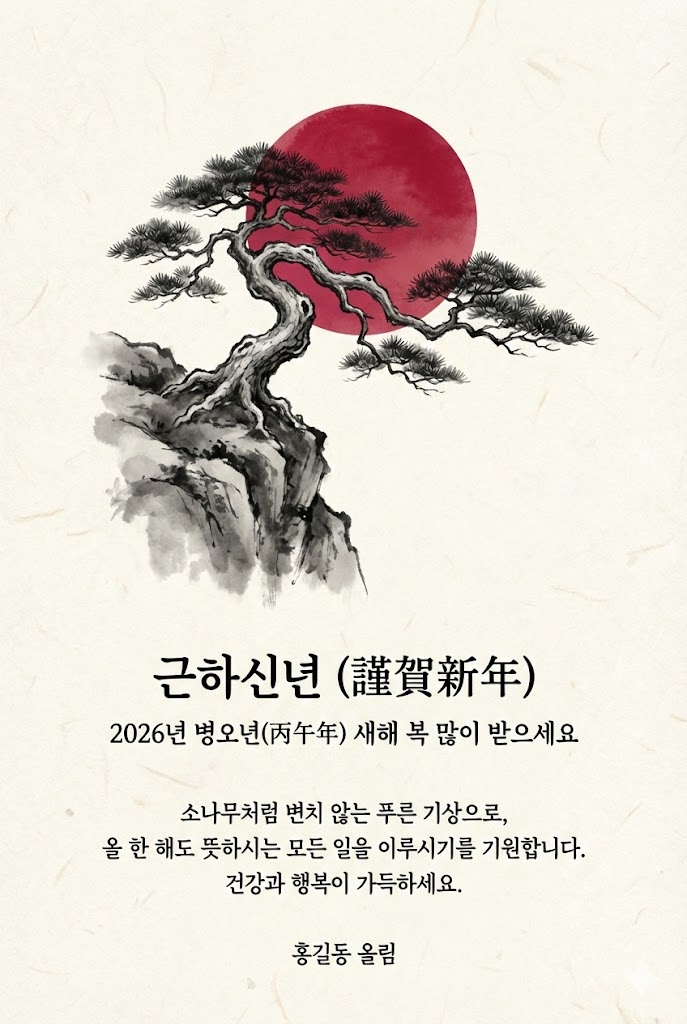 | [새해 인사 카드] 세로쓰기의 멋을 담은 프리미엄 수묵화 연하장 (0) | 2025.12.28 |