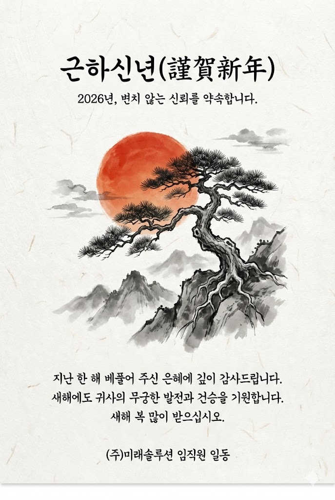 Footer: At the very bottom, add the sender's name or brand name in a subtle signature style: "(주)미래솔루션 임직원 일동".
