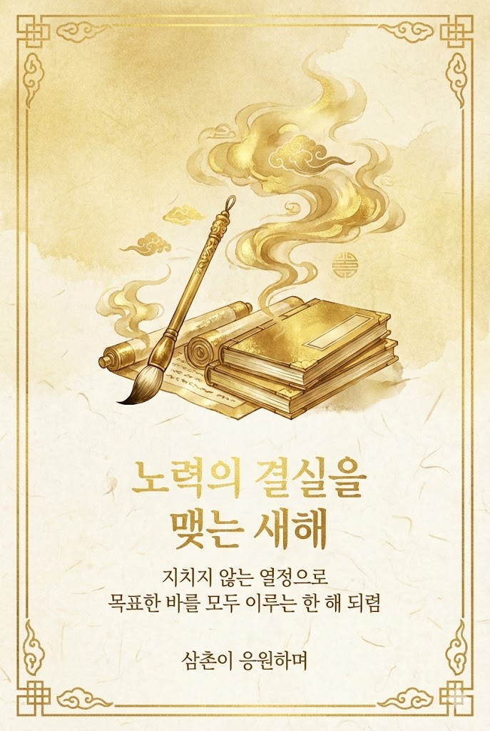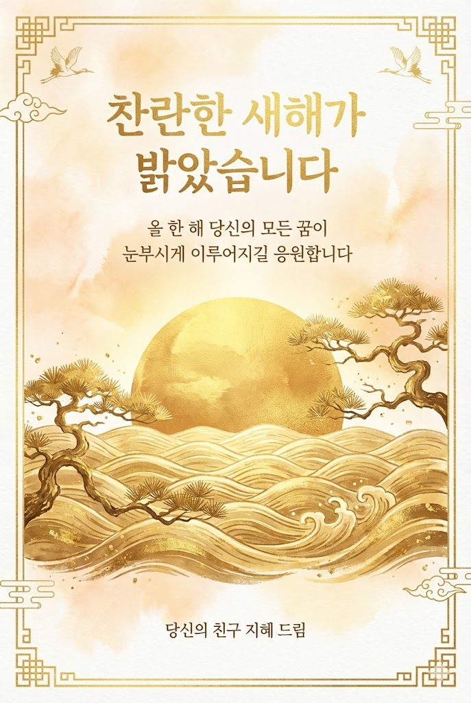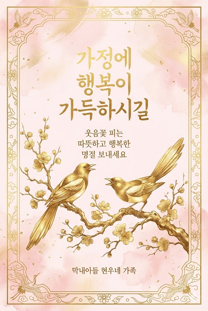 이 프롬프트는 단순한 그림을 넘어, 금빛이 주는 특유의 화려하면서도 차분한 동양적 미학을 디지털 캔버스에 구현합니다. 연하장, 감사 카드, 초대장 등 격식 있는 자리에 어울리는 이미지를 만드는 데 최적화되어 있습니다.