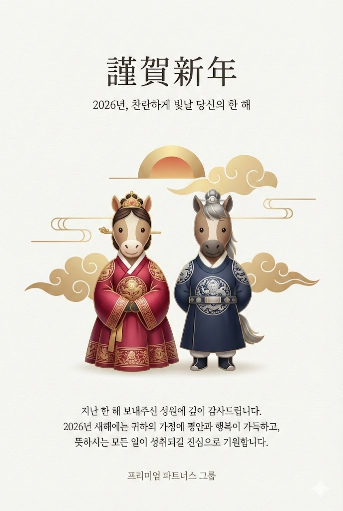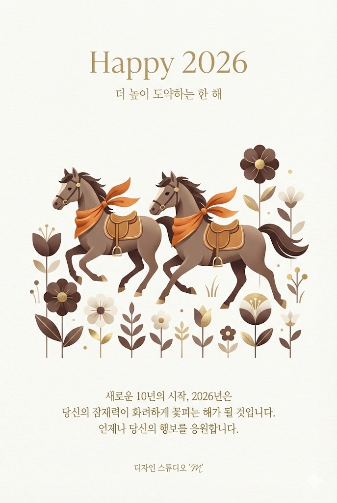 2026년 말띠 해를 기념하는 '하이엔드 프리미엄 연하장' 프롬프트를 더욱 업그레이드했습니다. 특히 많은 분이 요청하셨던 **'말 캐릭터의 다양한 스타일 변주'**를 반영하여, 예시 프롬프트 하나하나를 생략 없이 전체 텍스트로 공개해 드립니다.