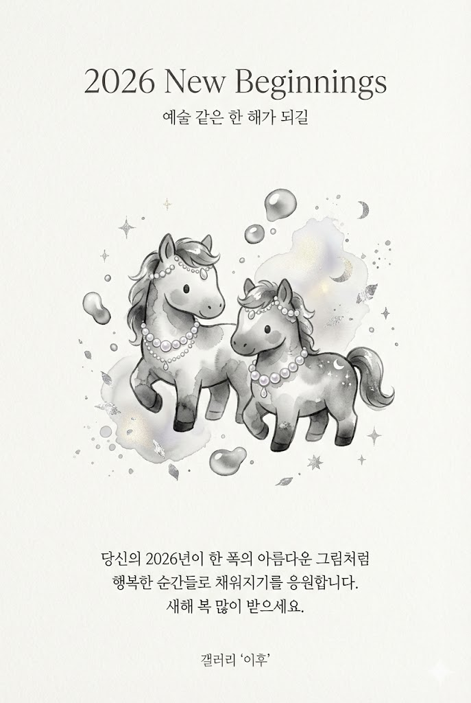 Footer: At the very bottom, add the sender's name or brand name in a subtle signature style: 갤러리 '이후'.