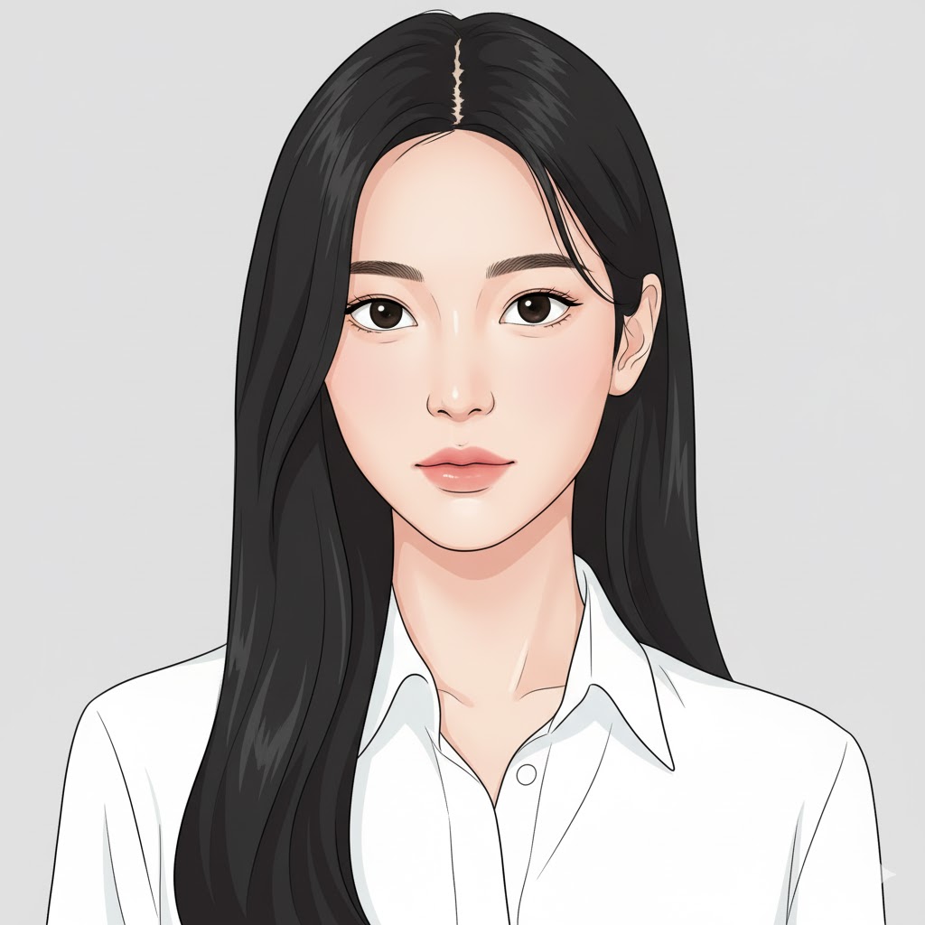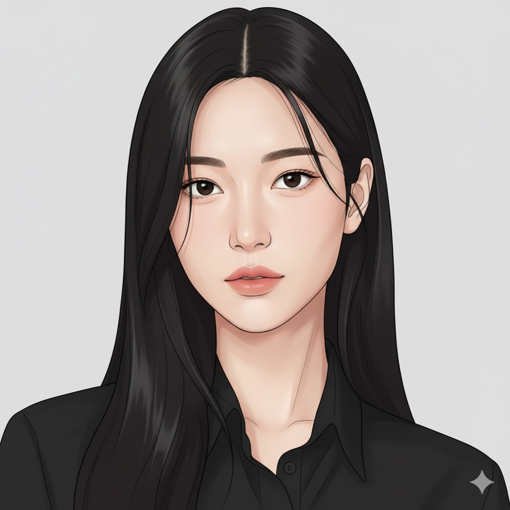 [uploaded image] is a half-body portrait style, depicted in an anime-style illustration where the subject gazes directly at the viewer. It is a cartoon-style drawing wearing a [업로드 이미지의 의상] against a simple background. –ar 3:4