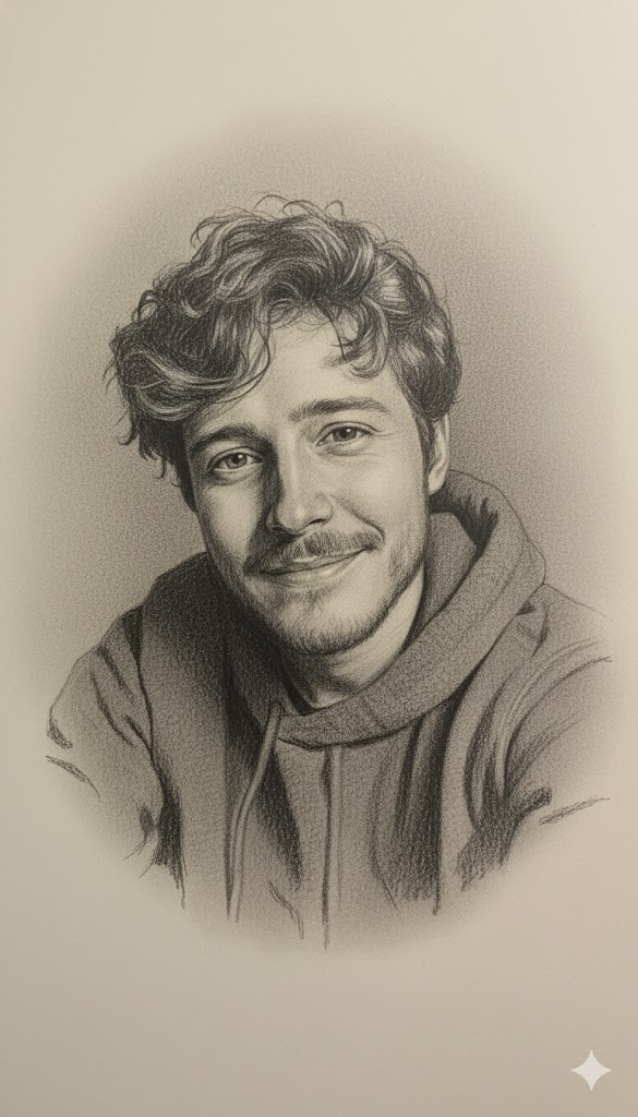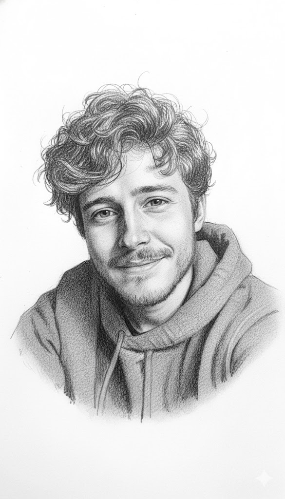 Generate an image from the uploaded photo as a hyper-realistic pencil sketch portrait of [insert subject/photo description]. Render ultra-fine graphite details with realistic shading, capturing textures of skin, hair, fabric, and background in precise pencil strokes. Show lifelike light and shadow depth on smooth ivory sketch paper, with delicate pressure variations and soft smudging for realism. Keep a monochrome tone with high-contrast lighting, cinematic pencil illustration style, and award-winning fine art quality. Include 8K pencil detail, charcoal depth, and a soft gradient background.