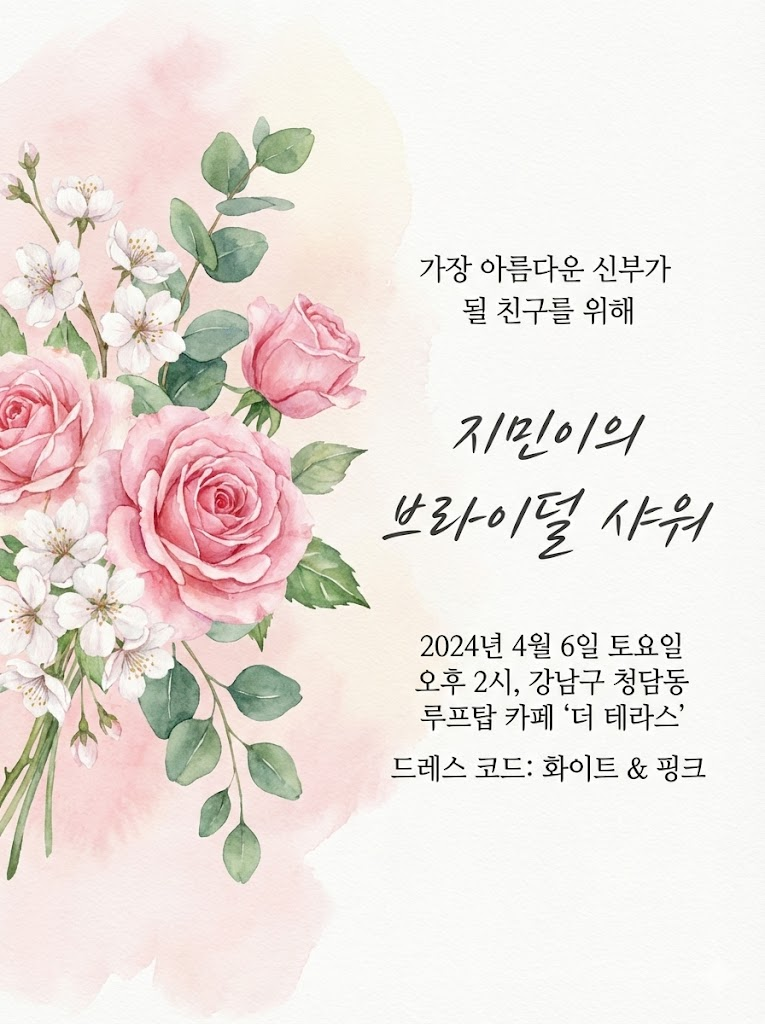 5. 브라이덜 샤워 초대장 (로맨틱하고 화사한 분위기)