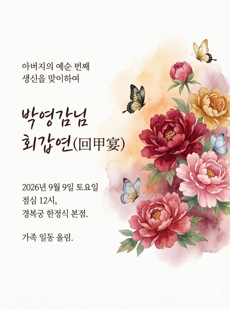 4. 환갑(회갑)연 초대장 (전통적이고 고상한 분위기)