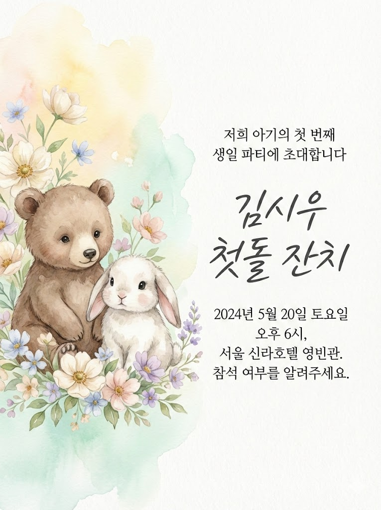 1. 첫돌 잔치 초대장 (따뜻하고 귀여운 분위기)