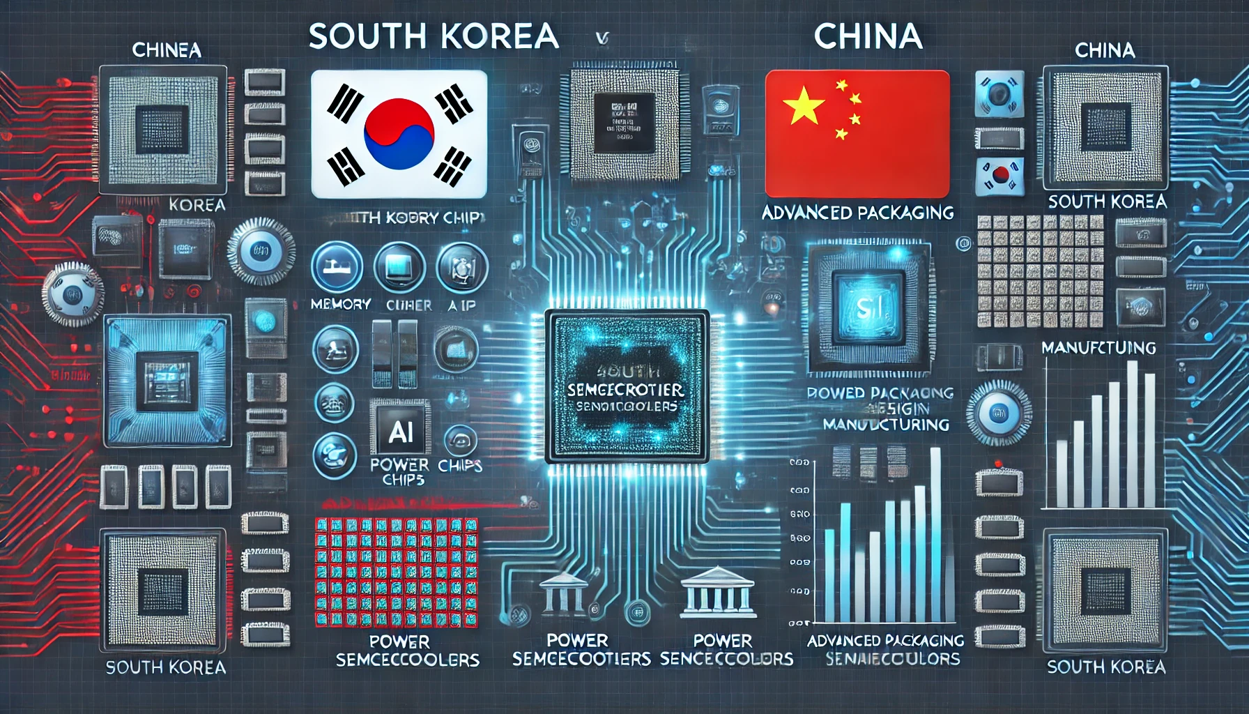 위의 표를 보면, 전통적인 반도체 제조 및 메모리 기술에서는 한국이 여전히 앞서 있지만, AI 반도체와 반도체 설계 및 전력 반도체 분야에서는 중국이 강점을 보이고 있습니다.