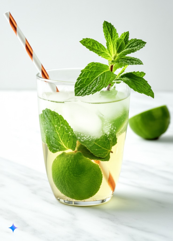 - 🍃 장식용: 라임 슬라이스, 민트 가지