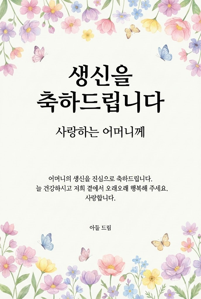 7. 부모님 생신 축하 카드 (Birthday Card for Parents)