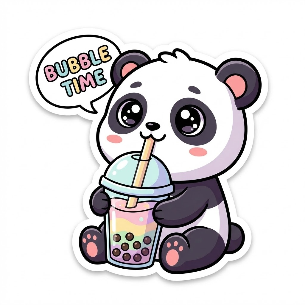 3. "버블티 타임!" 행복한 판다 스티커