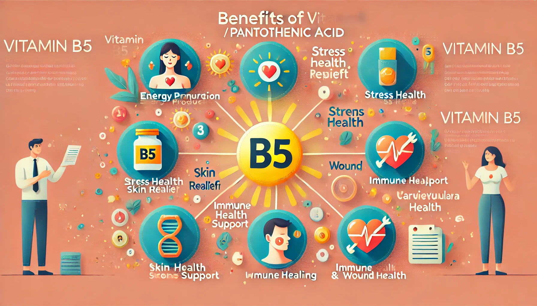 비타민 B5는 단순한 비타민이 아니라, 우리 몸의 에너지를 높이고 피부와 면역력을 강화하는 필수 영양소입니다. 꾸준한 섭취로 건강한 몸과 활력을 되찾아보세요!