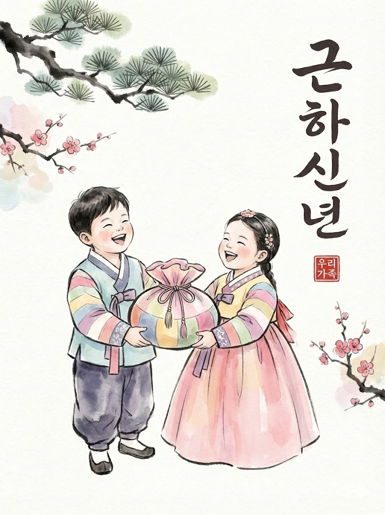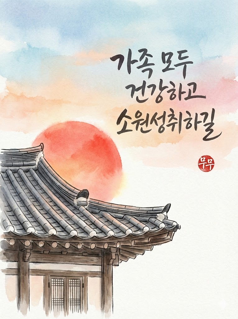 이제 어려운 영어 고민 없이, 마음속에 있는 따뜻한 풍경을 한글로 적고 내 이름에 꼭 맞는 도장까지 찍어 소중한 분들께 전송해보세요. 여러분의 정성이 담긴 연하장이 2026년의 시작을 더욱 빛내줄 거예요! 🙇♂️