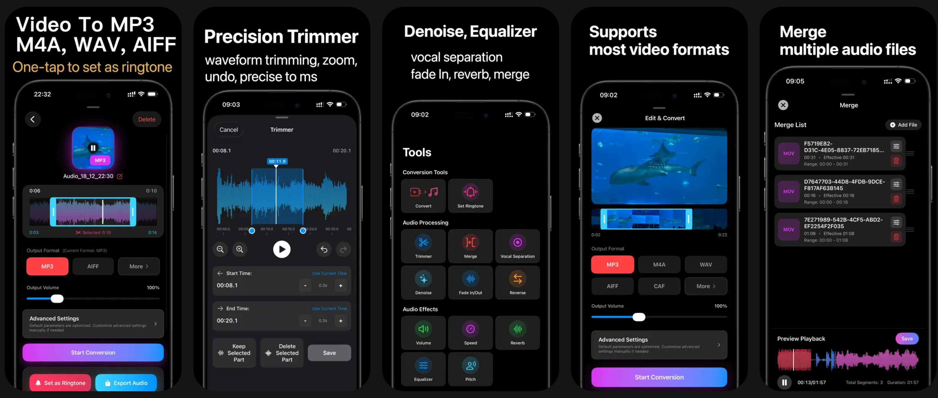 이 앱은 단순한 변환기를 넘어 강력한 오디오 편집 엔진을 탑재하고 있습니다. 모든 작업은 기기 내에서 100% 오프라인으로 처리되어 개인정보 유출 걱정도 없습니다.