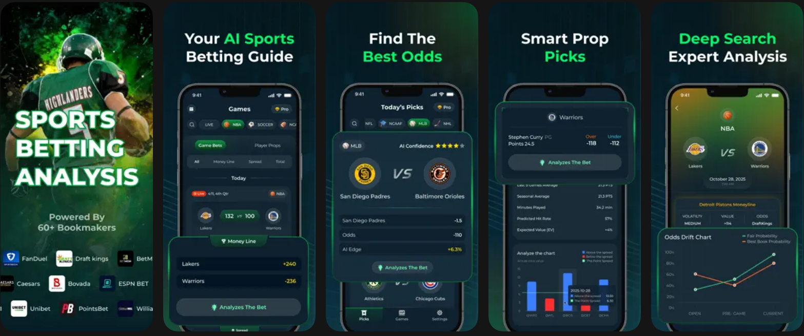 단순한 감이 아니라 데이터에 기반한 예측을 원하시는 분들에게 강력한 도구가 될 것입니다. NFL, NBA, MLB, NHL, 축구 등 다양한 종목을 하나의 앱에서 모두 확인할 수 있습니다.