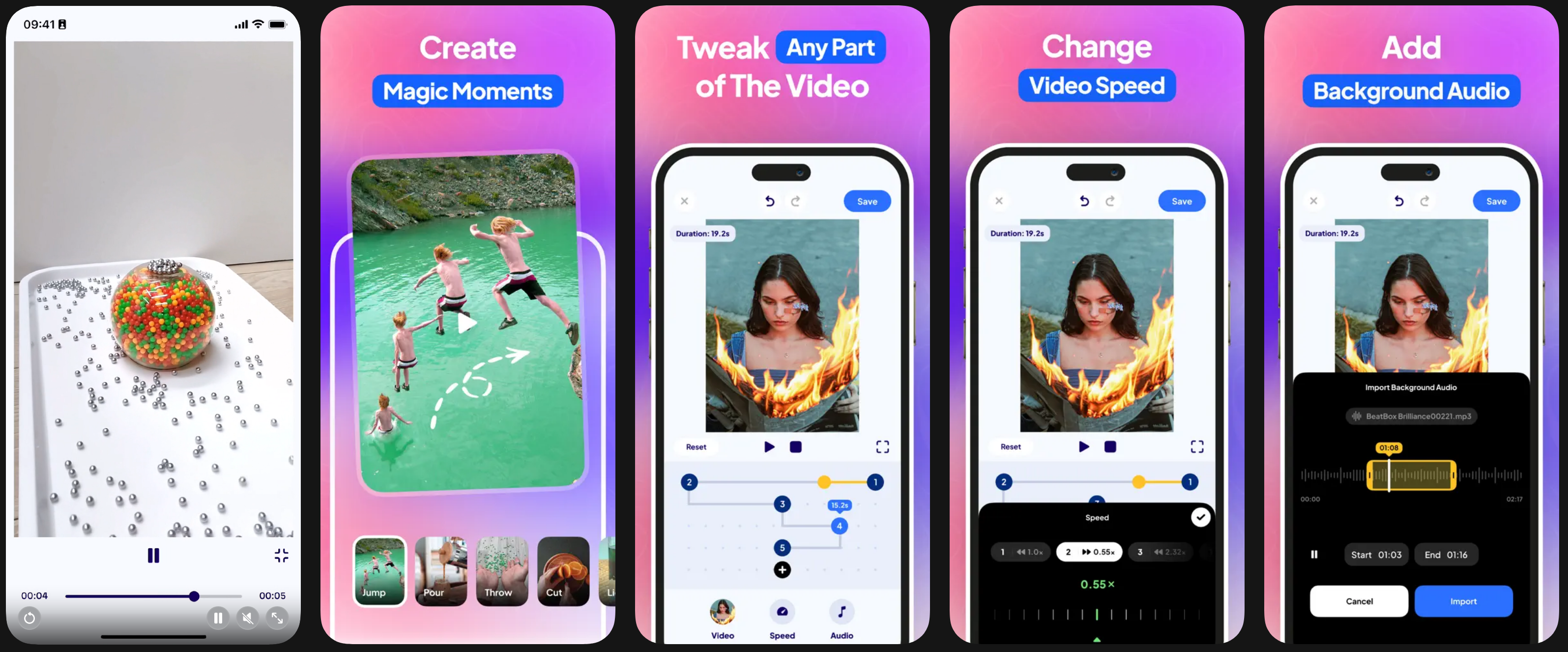 1. 평범한 순간을 특별하게! 걷거나 뛰는 모습, 물건을 떨어뜨리는 장면 등 아주 사소한 영상도 이 앱을 거치면 마치 영화 '테넷'의 한 장면처럼 신비롭고 재미있는 영상으로 재탄생합니다.