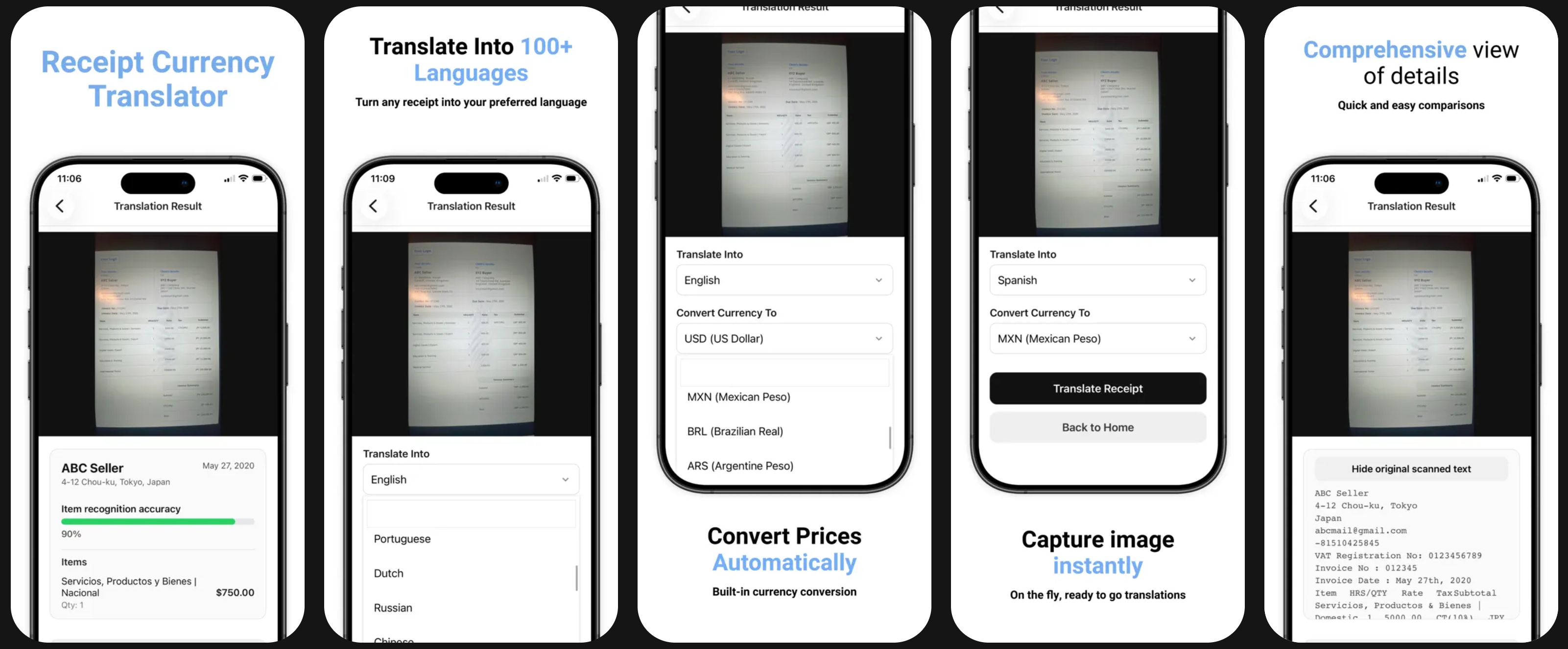 - 100개 이상의 언어 & 통화 지원: 달러, 유로, 엔화는 기본! 전 세계 대부분의 영수증을 해석해 줍니다.