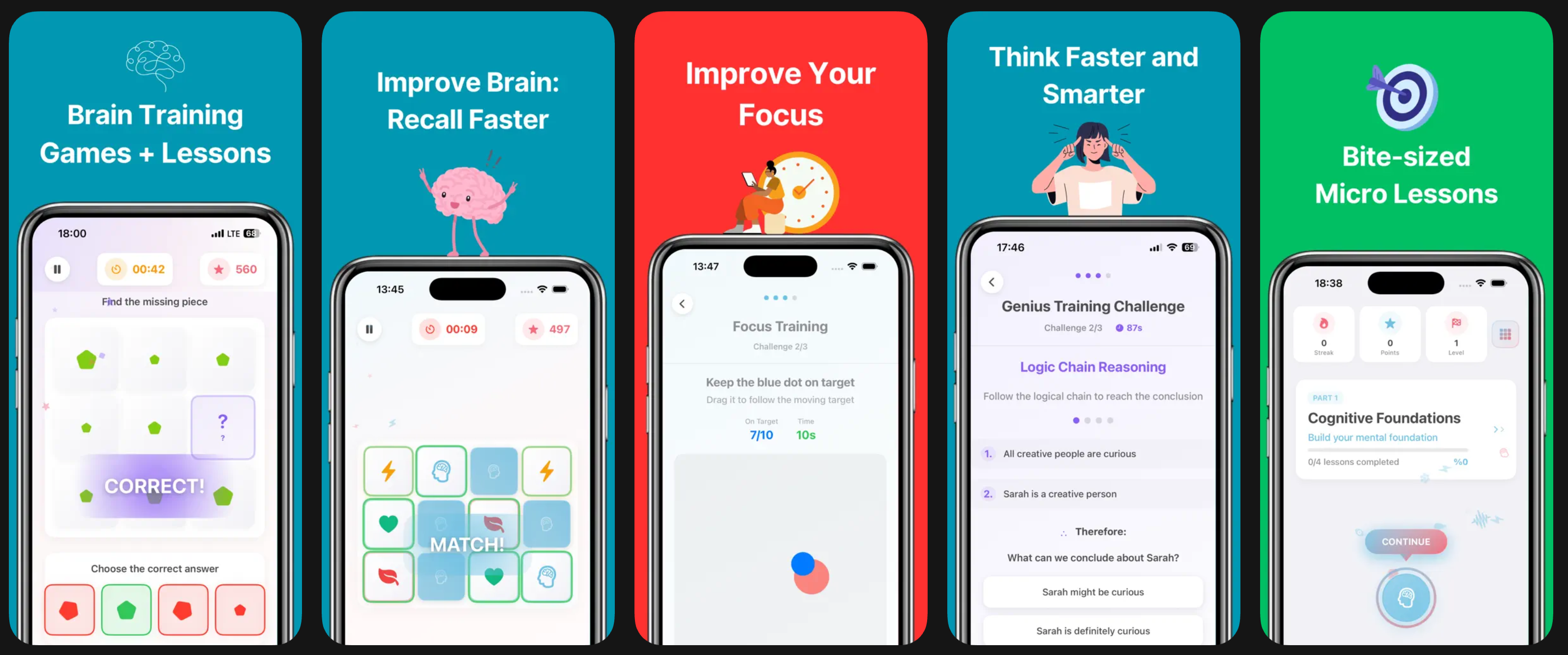 BrainFit은 단순한 게임이 아닌, 과학적으로 설계된 두뇌 트레이닝 프로그램입니다. 짧은 시간 투자로 여러 인지 능력을 효과적으로 향상시킬 수 있도록 돕습니다.