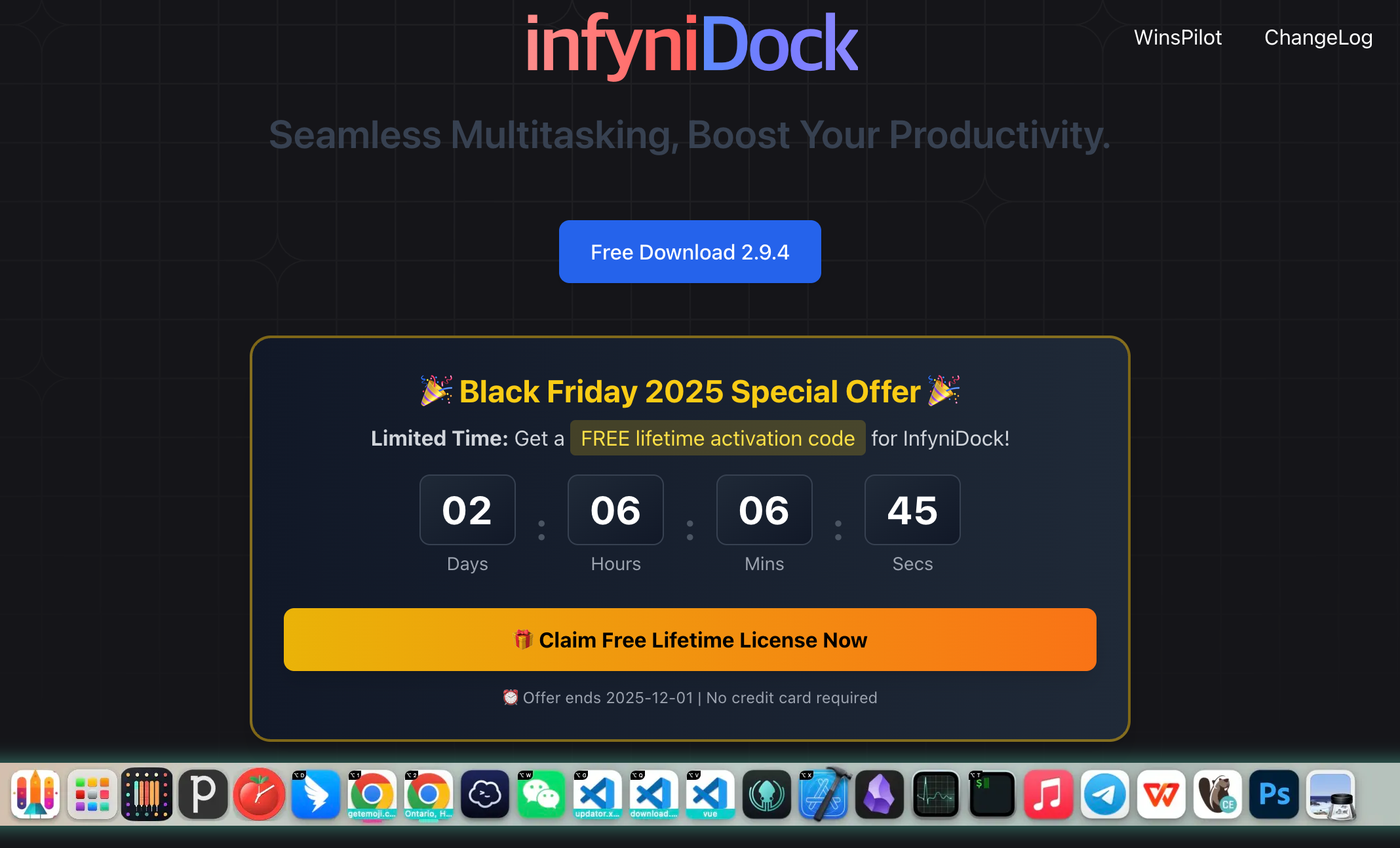 평소 맥의 독(Dock) 기능이 조금 아쉽거나, 창 관리가 불편하셨나요? 무려 $12.00 상당의 강력한 독 & 윈도우 매니저 앱인 **'InfyniDock'**의 평생 라이선스가 단 이틀간 무료로 풀렸습니다!