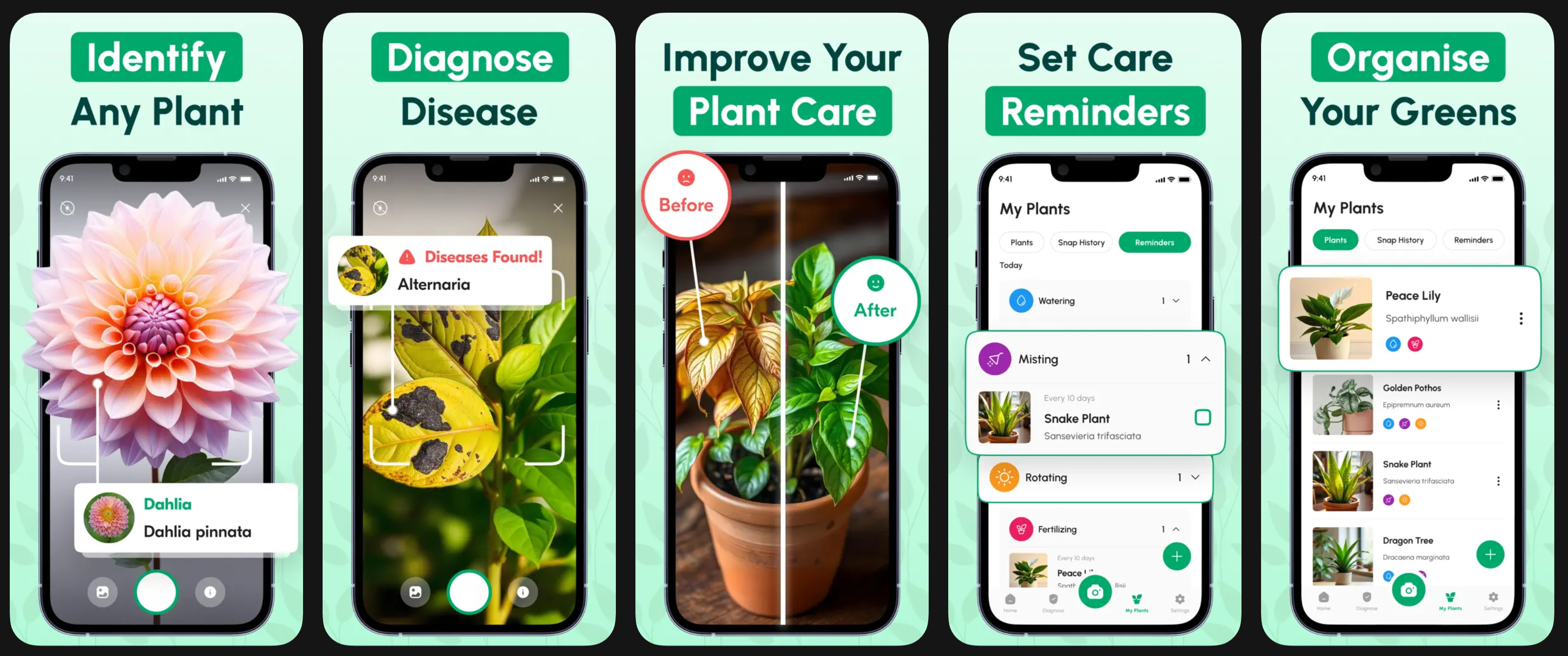 - 🩺 질병 진단: 식물 잎이 노랗게 변하거나 반점이 생겼나요? 사진을 찍으면 병명을 진단하고 치료법을 제안해 줍니다.