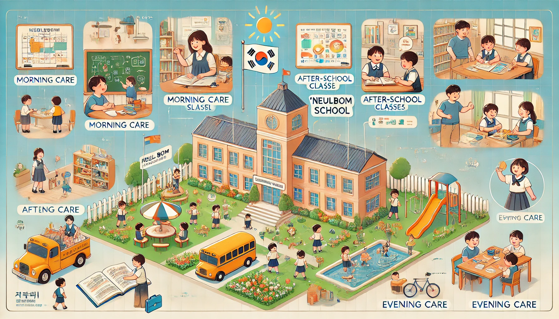 - 돌봄 프로그램: 저녁시간까지 돌봄이 필요한 아이들을 위한 서비스