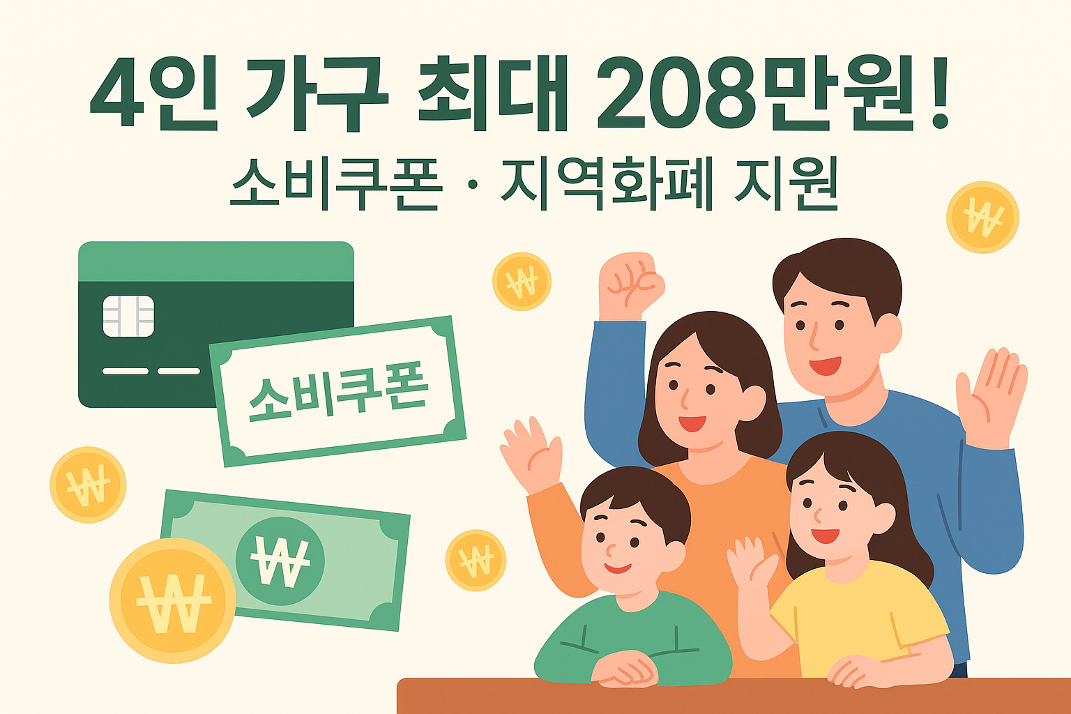 4인 가구 기준으로 민생지원금 총액은 최대 208만 원입니다. 항목별로 나누면 아래와 같습니다.