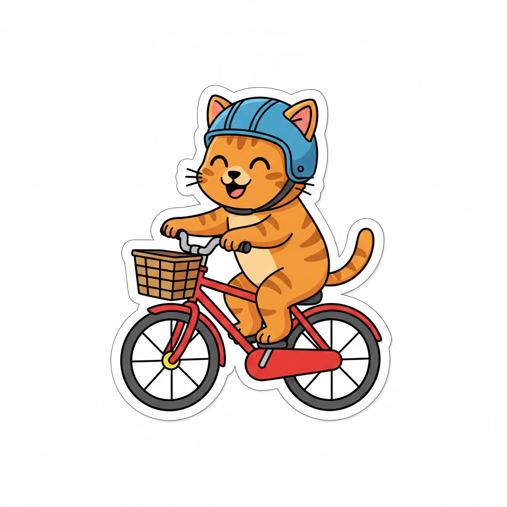 1. 자전거 타는 고양이: "A cute [cat] [riding a bicycle]. Cartoon style vector illustration, perfect for a die-cut sticker. Isolated on a white background."
