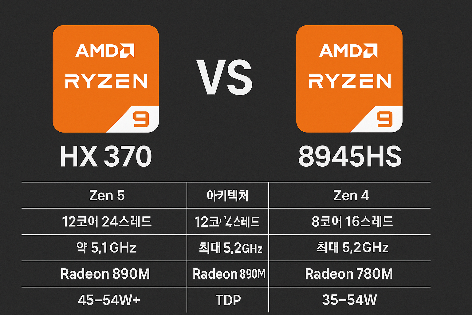| 항목 | AMD Ryzen 9 HX 370 | AMD Ryzen 9 8945HS |