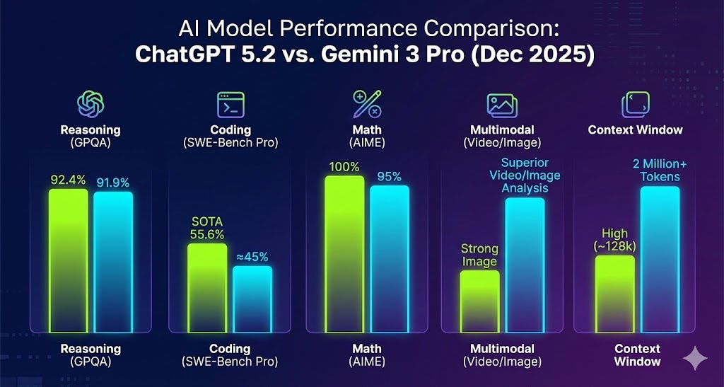 ChatGPT 5.2 vs Gemini 3 Pro: 완벽 비교 분석, 승자는 누구인가?