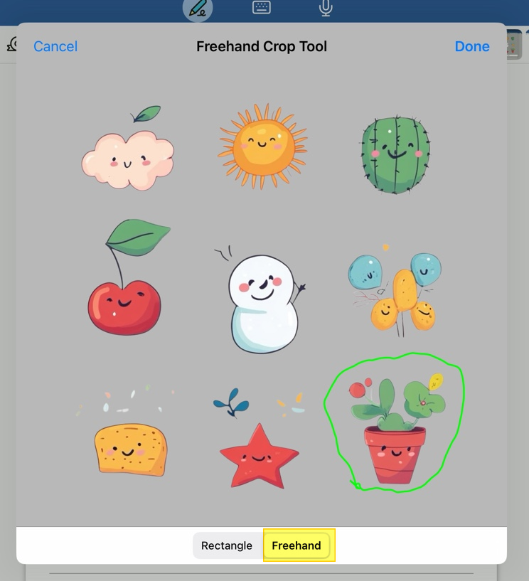 자르기 화면에서 Freehand를 통해 필요한 아이콘만 선택한 모습